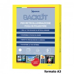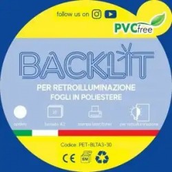 Backlit è un foglio stampabile in poliestere PET con finitura opaca, retro lucido, adatto alla retroilluminazione, ideale per cornici e insegne luminose, PVC free.
